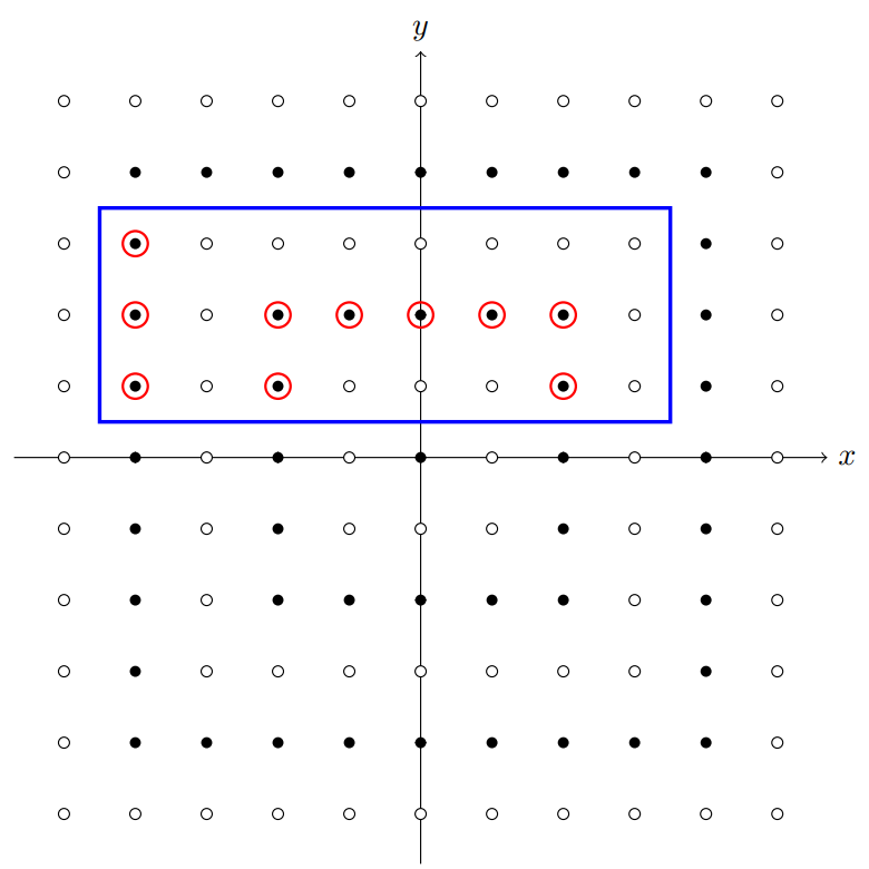给定整数 ,请你统计满足 且 的所有整数点 中,黑色格点的个数。